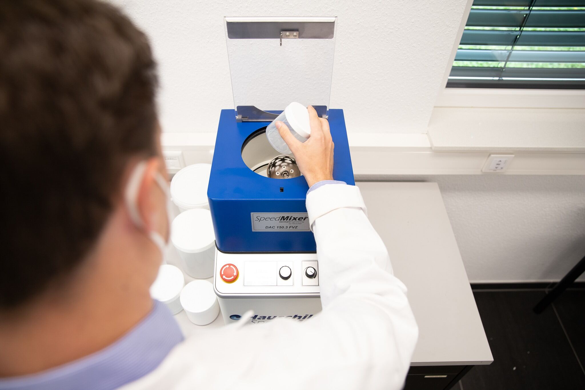 Already have a jar? Contact us and we'll be happy to design a custom adapter solution that will allow you to use your existing jar in the Hauschild SpeedMixer™.